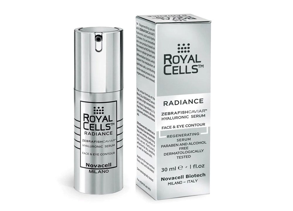Royal Cells RADIANCE: Regeneráló és restrukturáló szérum az arcra, a szemkörnyékre és a dekoltázsra ZEBRAFISHCAVIAR™ vagy Roe Extract, hidra komplex és hialuronsav tartalommal.